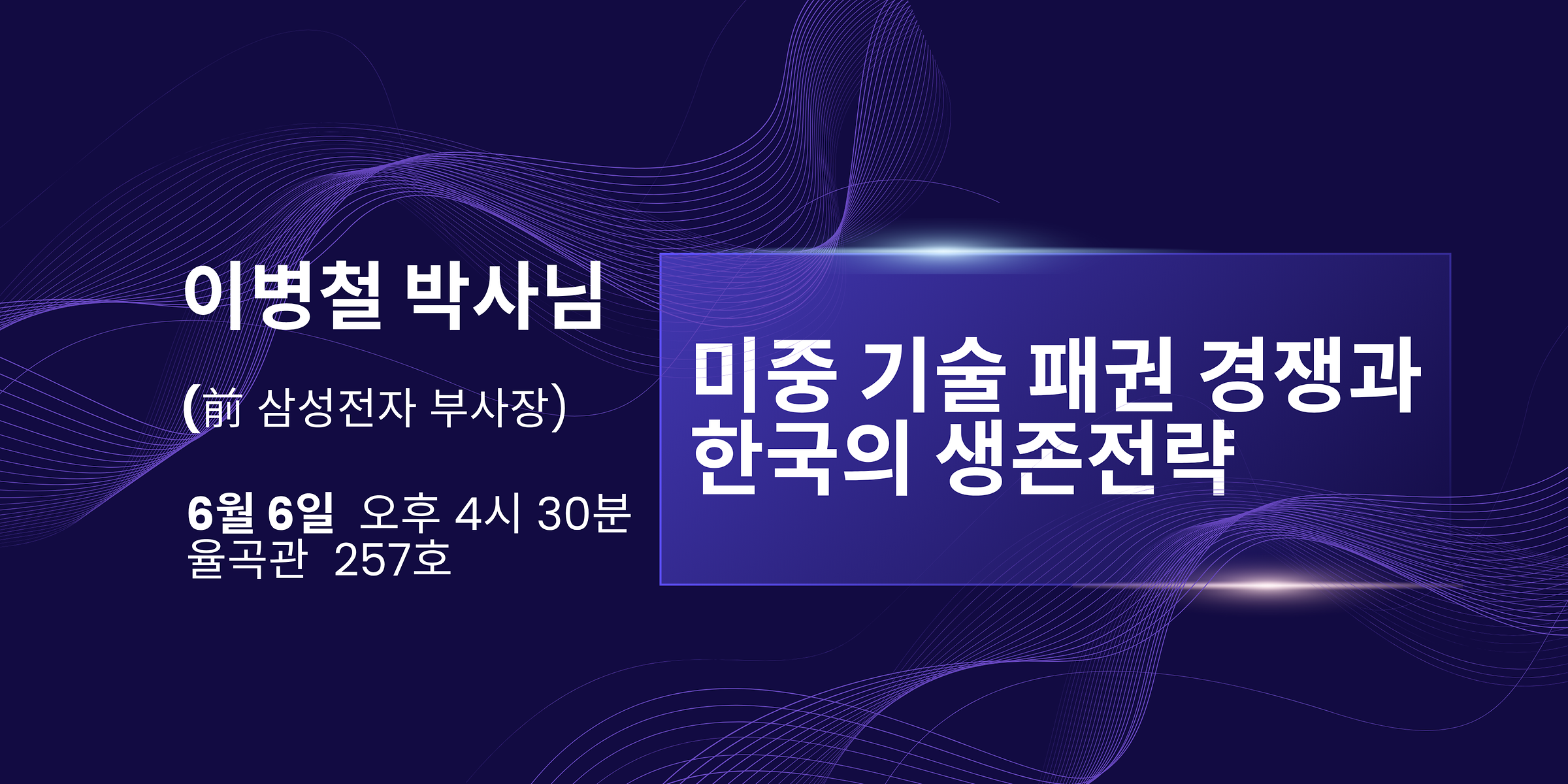 아주대학교 정치외교학과에서는 이병철 박사님 (前 삼성전자 부사장님)을 모시고 특강을 아래와 같이 진행 예정입니다.