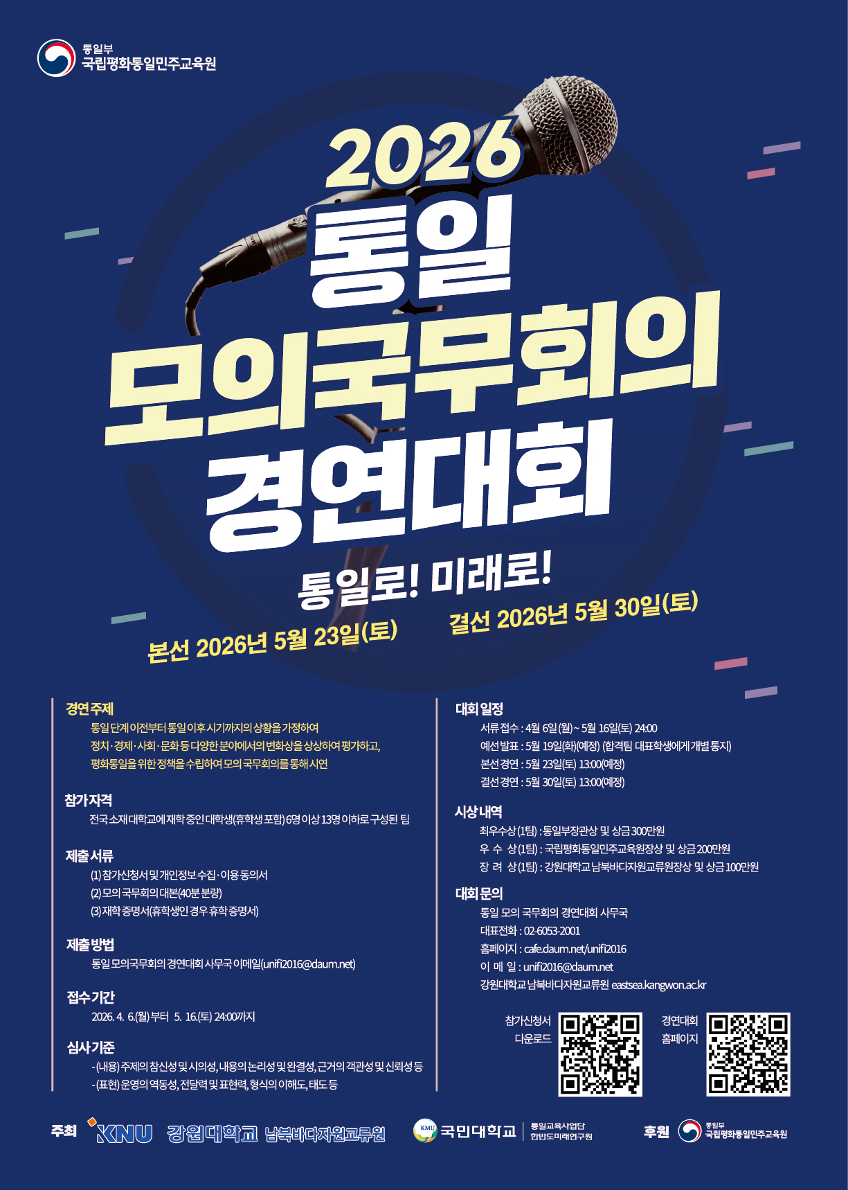 [기타] [통일부] 2026 제12회 통일모의국무회의 경연대회 개최 안내 (~5/16)