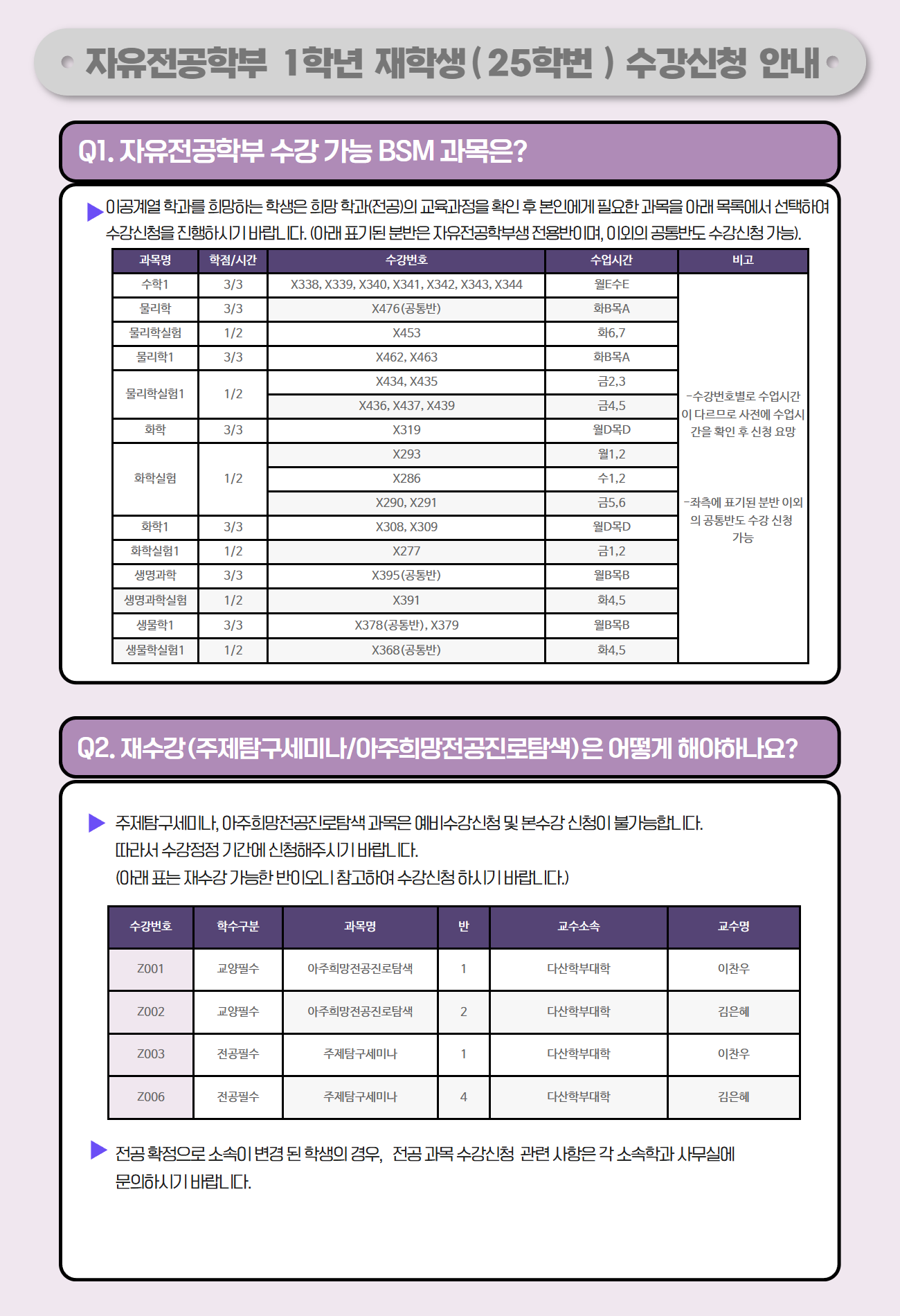 [2026-1학기 자유전공학부 1학년 재학생 ( 25학번 ) 수강신청 안내]