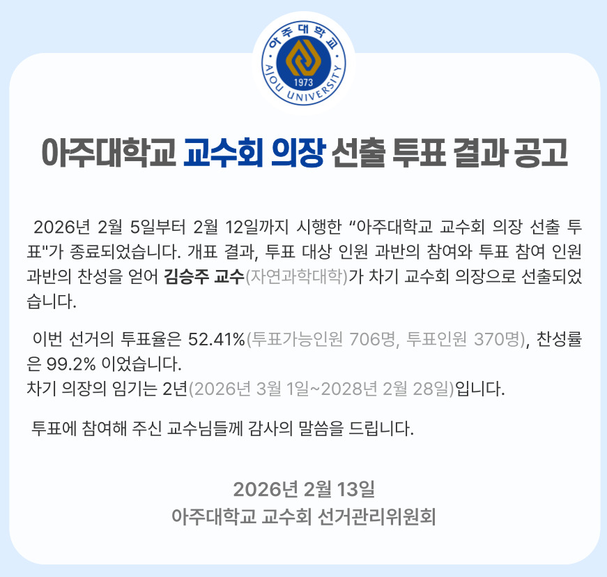 2026 교수회 의장 선출 투표 결과 공고