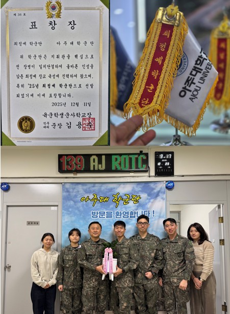 아주대학교 학생군사교육단(학군단)이 육군학생군사학교가 주최한 전국 학군단 종합평가에서 ‘2025년 최정예 학군단’에 선정됐다.
