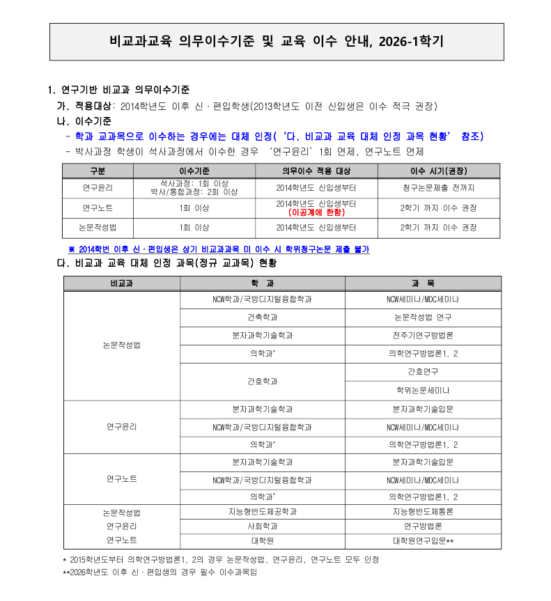 [학사] 2026-1학기 비교과교육 의무이수기준 및 교육 이수 안내