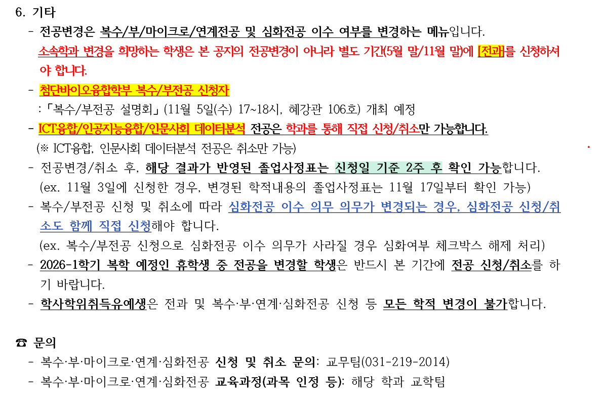 각 전공별 (복수/부/마이크로/연계전공) 안내사항: 클릭