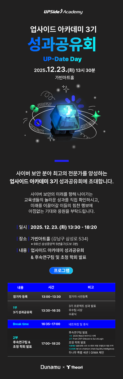 [공지] [두나무/티오리] UPSide Academy 4기(Web3 보안 최고 전문가 양성과정) 모집(~1/5(월))