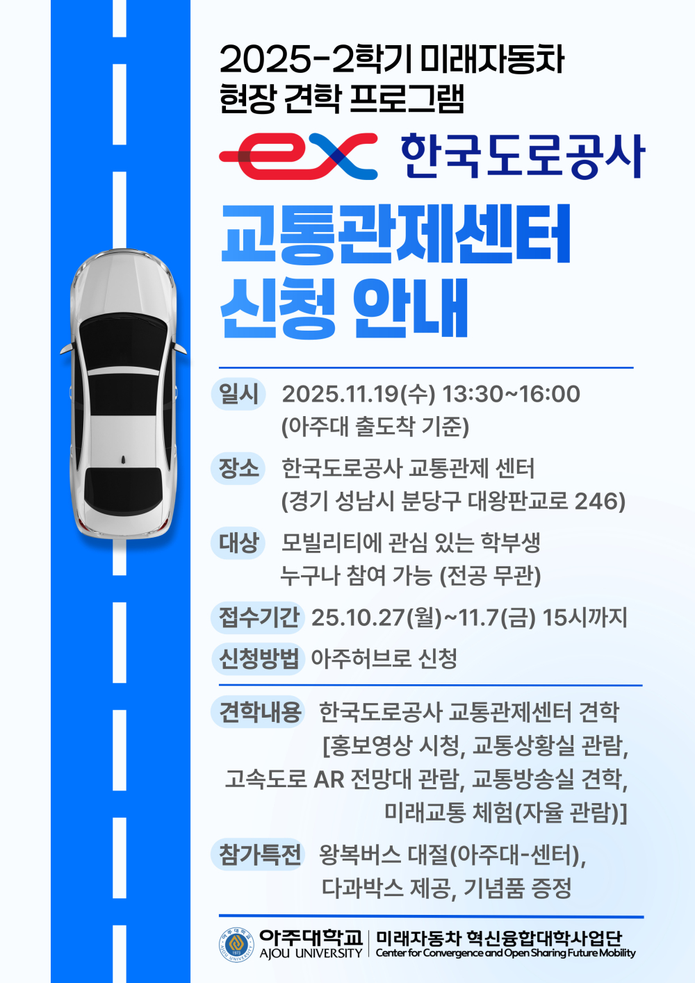[기타] 미래자동차 현장견학프로그램(성남시 한국도로공사 교통관제센터) [11.19(수) 13:30~16:00]