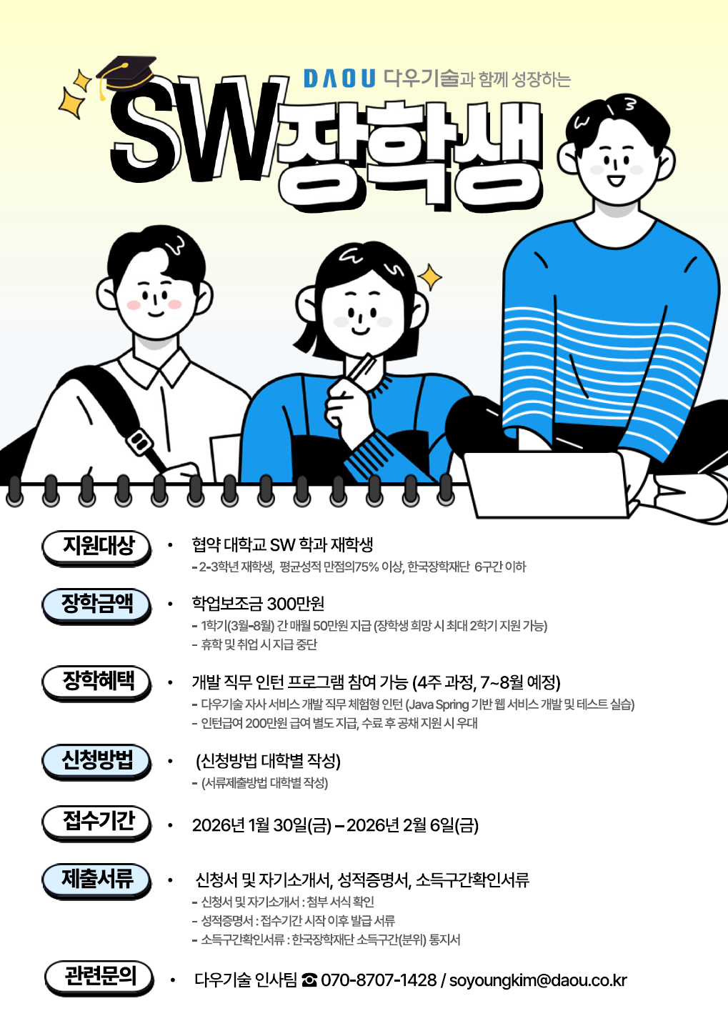 [공지] 2026학년도 1학기 다우기술 SW장학생 모집(~2.8)