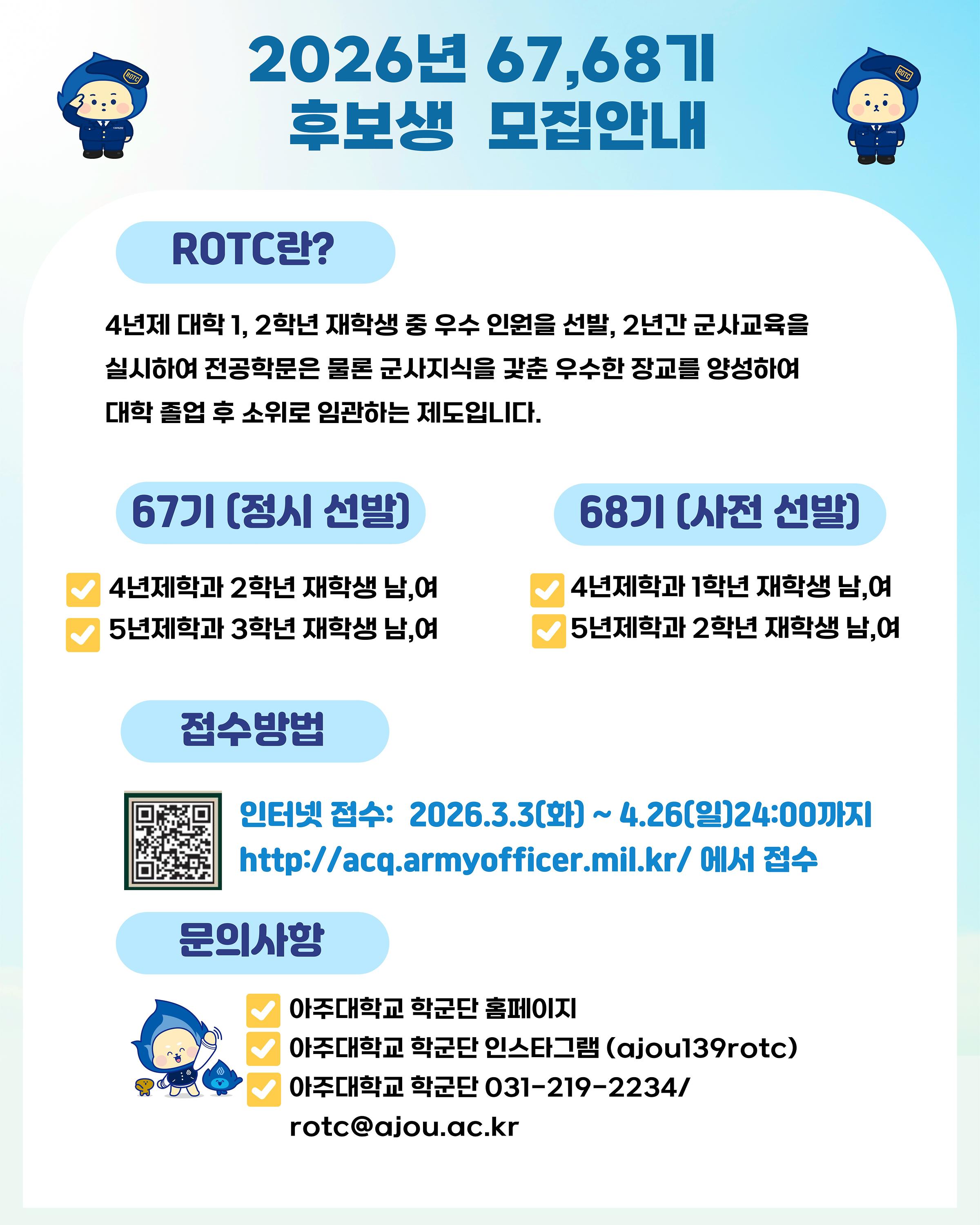 2026년 학군사관(ROTC) 후보생 모집(67·68기) 안내