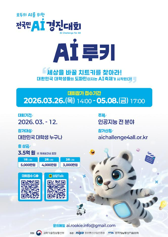 [총 상금 3.5억 세상을 바꿀 치트키를 찾아라! 2026 AI 루키 대회 참가자 모집 ]